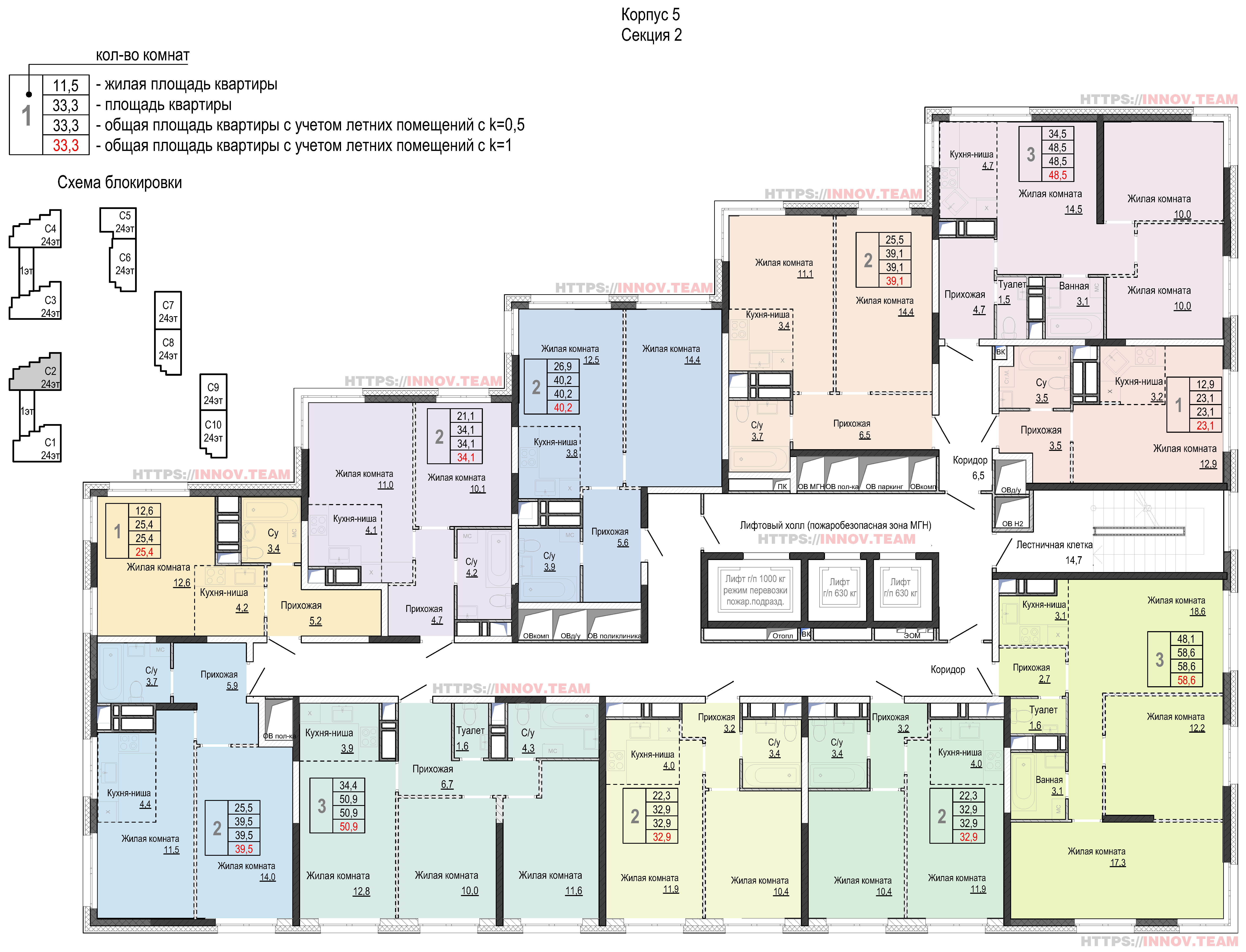- Планировка первого, второго, третьего, четвертого и пятого корпусов.