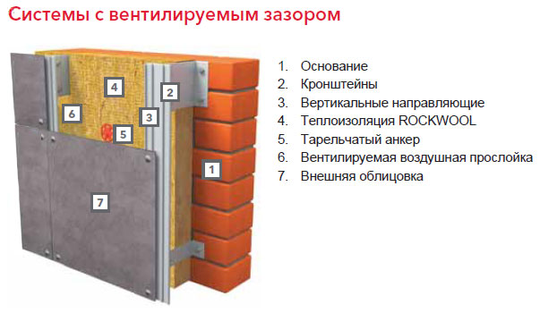 2. Система металлических направляющих и воздушный зазор 50 мм.;